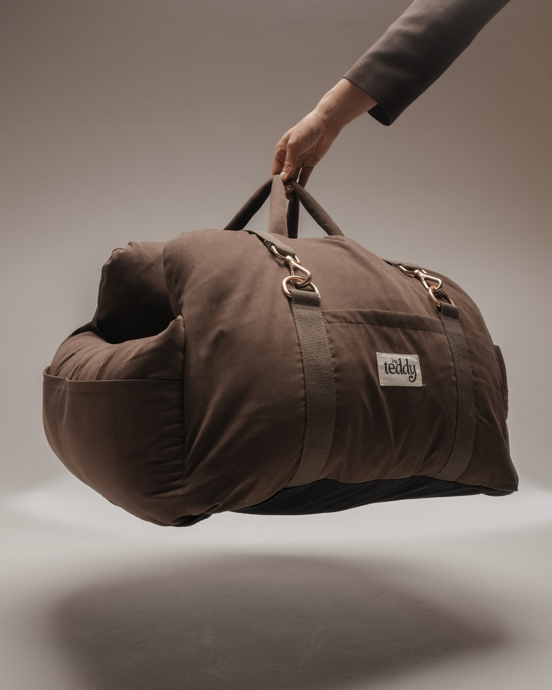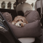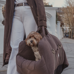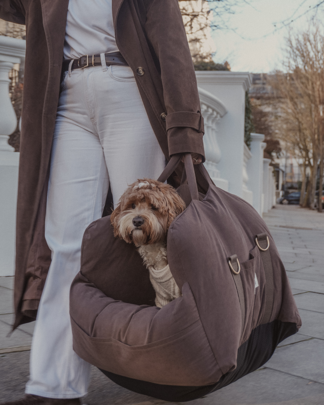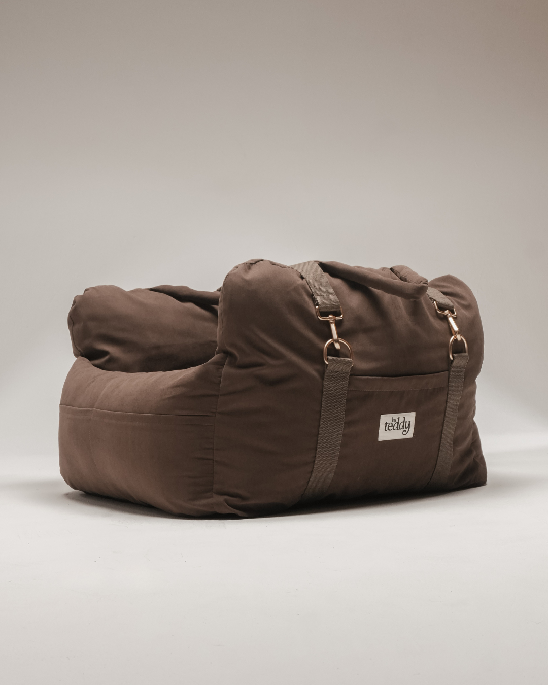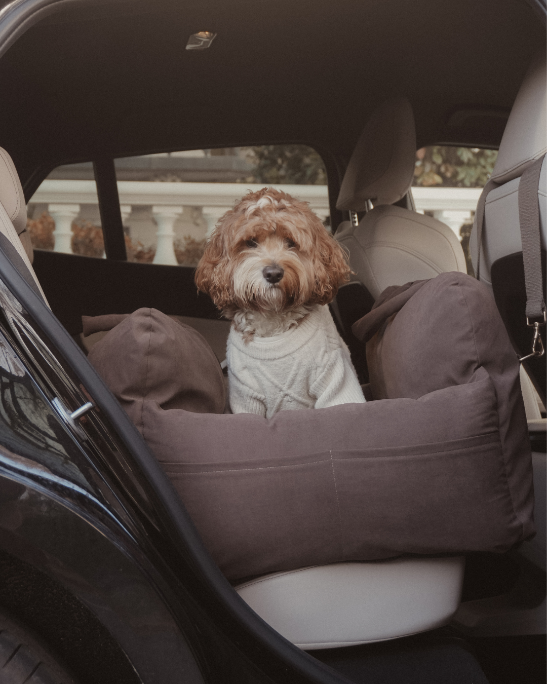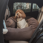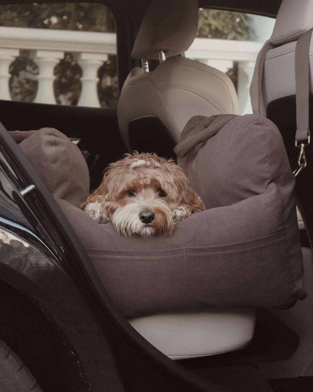 Inside, a reversible pillow gives your dog the choice of cosy faux fur on one side, or a cooling matte fabric on the other, comfort tailored to every season. Lightweight yet insulating, the Puffer Car Seat functions as a secure travel seat, a portable bed, and a carry bag in one thoughtful design.