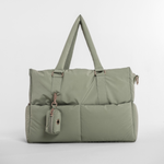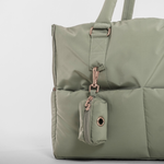 Finished with matte gold hardware, monogram zips, and our canvas patch branding, The Puffer Carrier is available in two timeless shades: Matcha and Hazelnut.