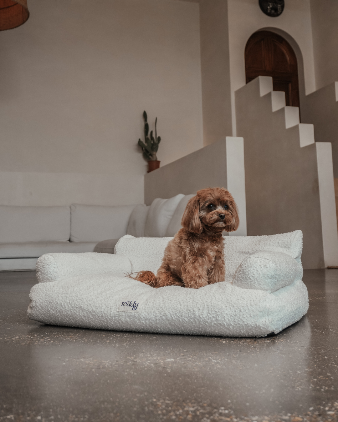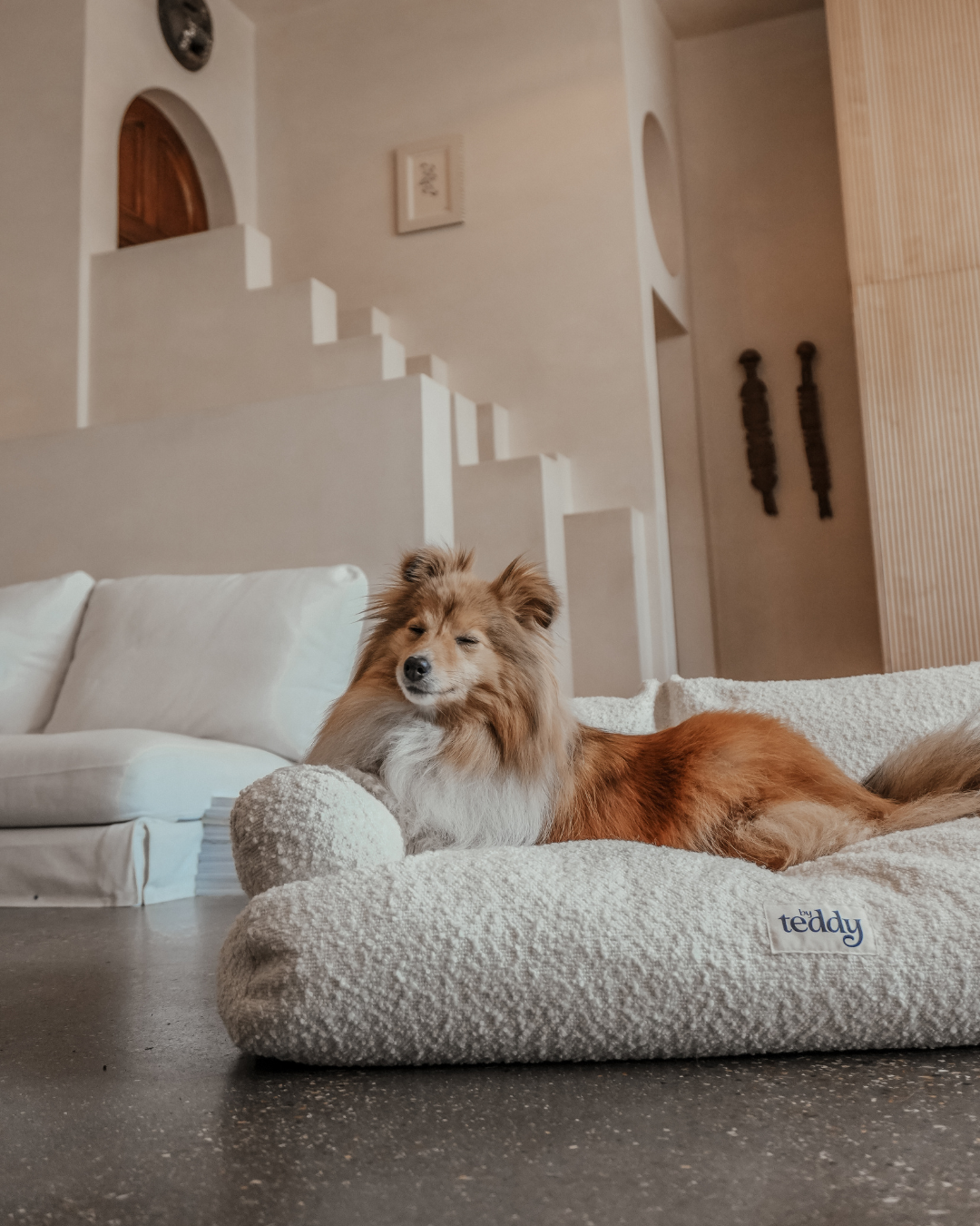 Crafted from durable, premium bouclé fabric, this elevated dog bed is thoughtfully designed to blend seamlessly into your home. With its structured silhouette and soft, supportive cushioning, The Teddington offers your dog a space of their own, without compromising yours.