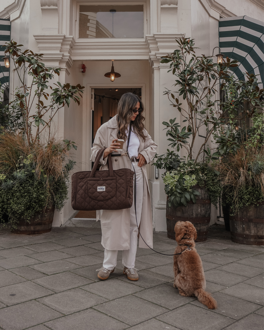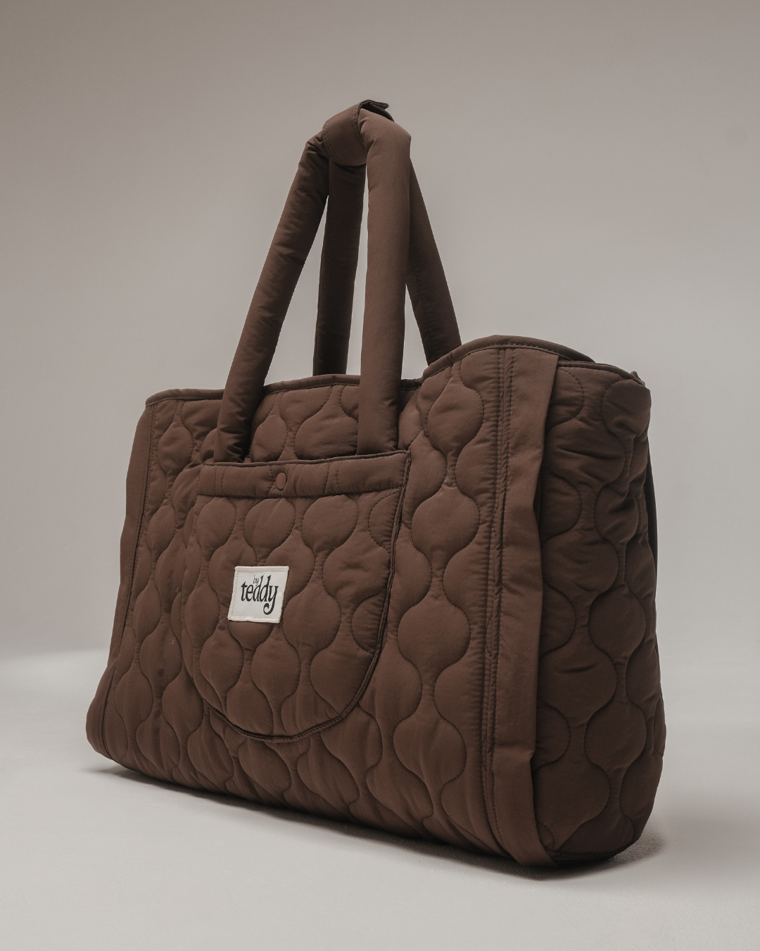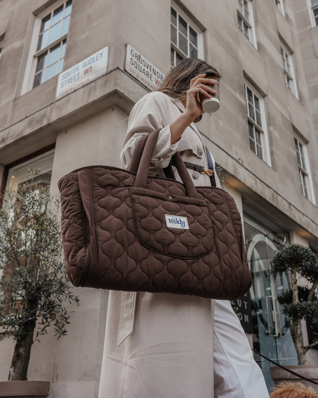 Crafted with a softly padded, quilted exterior and a super cosy sherpa-lined interior, it creates a warm, comfortable space while keeping everything you need close at hand. Thoughtfully designed to be worn as an elevated everyday carry, then unfolded in seconds when they’re ready to rest.